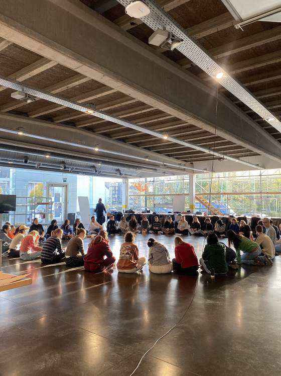 In the early days of our case study, we all sat down with our tutor, Irene Müller, and discussed the importance of rituals. Irene suggested to sit in a circle, close our eyes and make few noises to exercise our existence towards each other. Somebody suggested that each school day we bring in a present to exchange with others and discuss themes of possessions and belongings. Participating in these rituals brought us together.